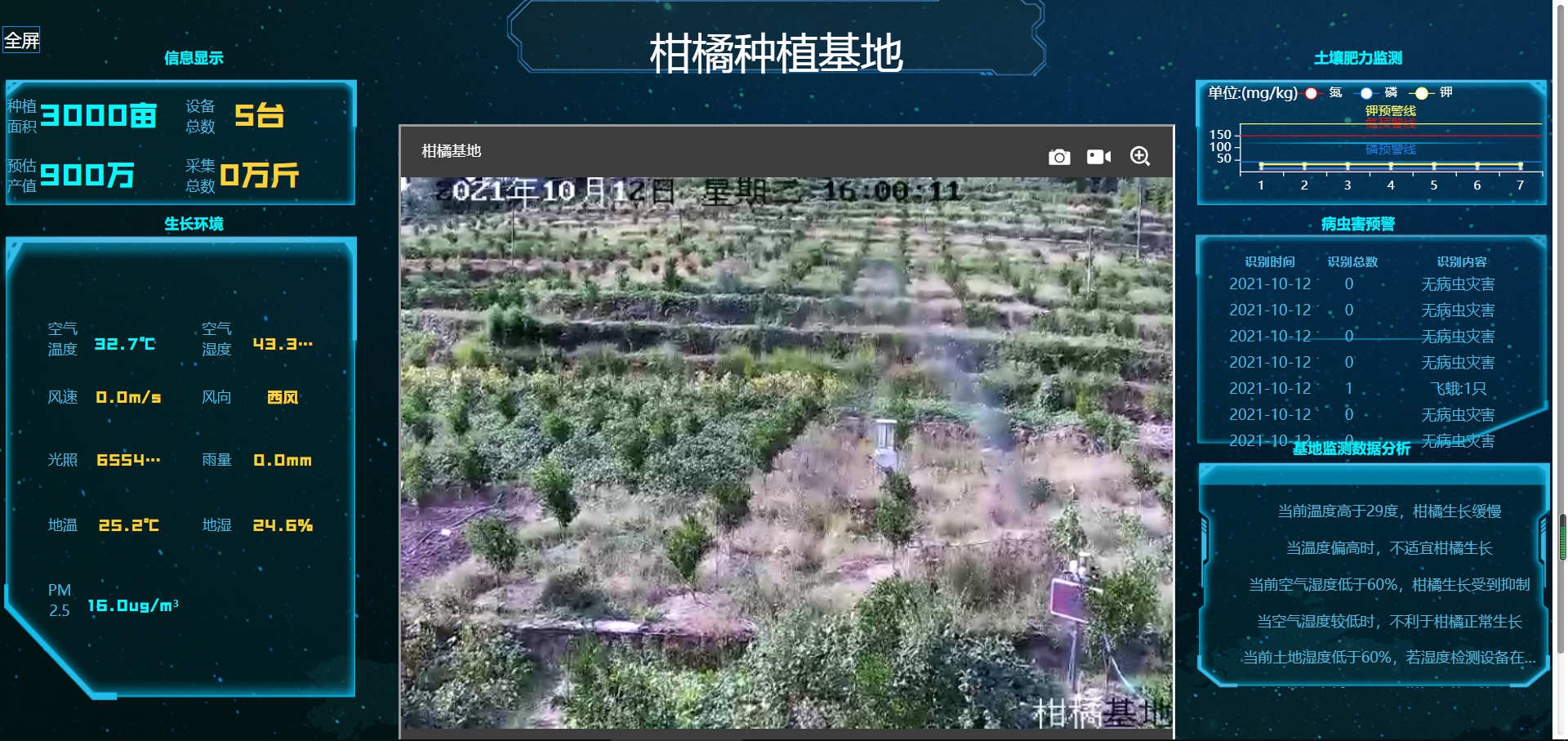 一块蓝色大屏幕引人注目。大屏幕上,基地每块土地的水肥、灌溉、产品数据、产量、气候情况一览无余,工作人员通过实时监测数据来分析泥溪黑木耳的生长情况,然后开展后续管理。