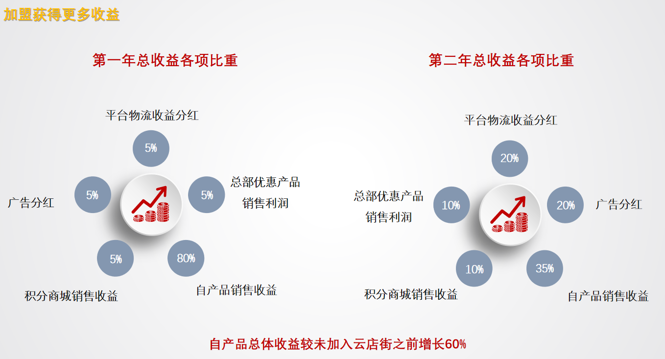 入驻云店街智能社区物流配送平台,收入来源哪里?入驻之后您的收益模式瞬间增加:自产品销售收益,积分商城收益,客源分红,平台优惠产品销售收益,广告分红等。第一年您的收益还以原产品销售收益为主,第二年您对云店街新零售模式熟悉之后,您本店产品销售收益虽有增长,但只占您总体收益的30%!您通过云店街总部平台获取的广告等收益会大大增加,乃至超过你原产品销售收益!