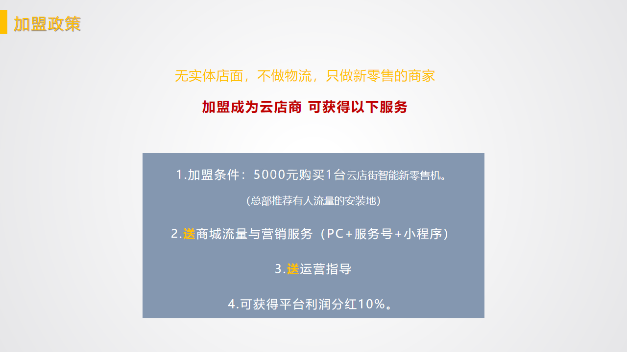 或者选择加盟政策二: